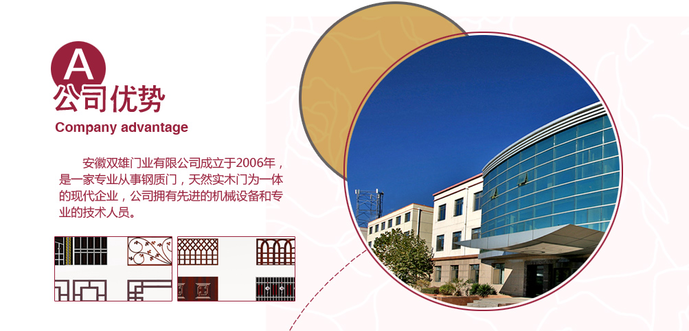 安徽六安雙雄門業有限公司成立于2006年,是一家專業從事鋼質門,天然實木門為一體的現代企業,公司擁有先進的機械設備和專業的技術人員,以科技為依托,以市場需求為導向,大膽創新追求更好,全身致力于提高門業裝飾水平。